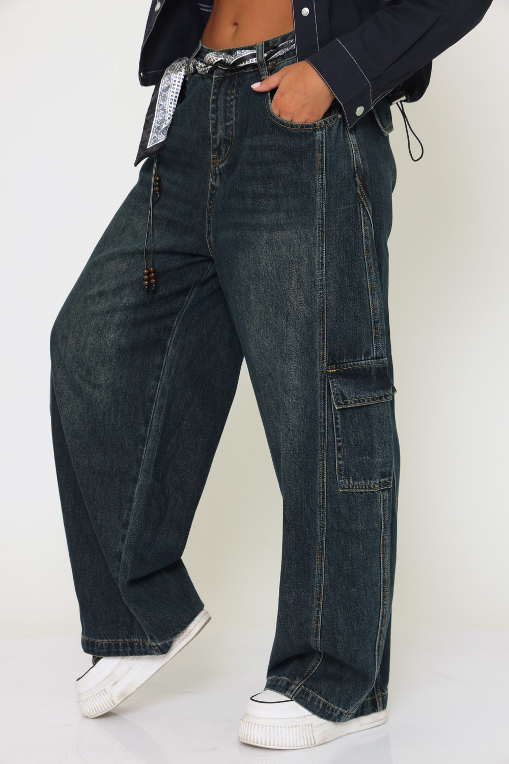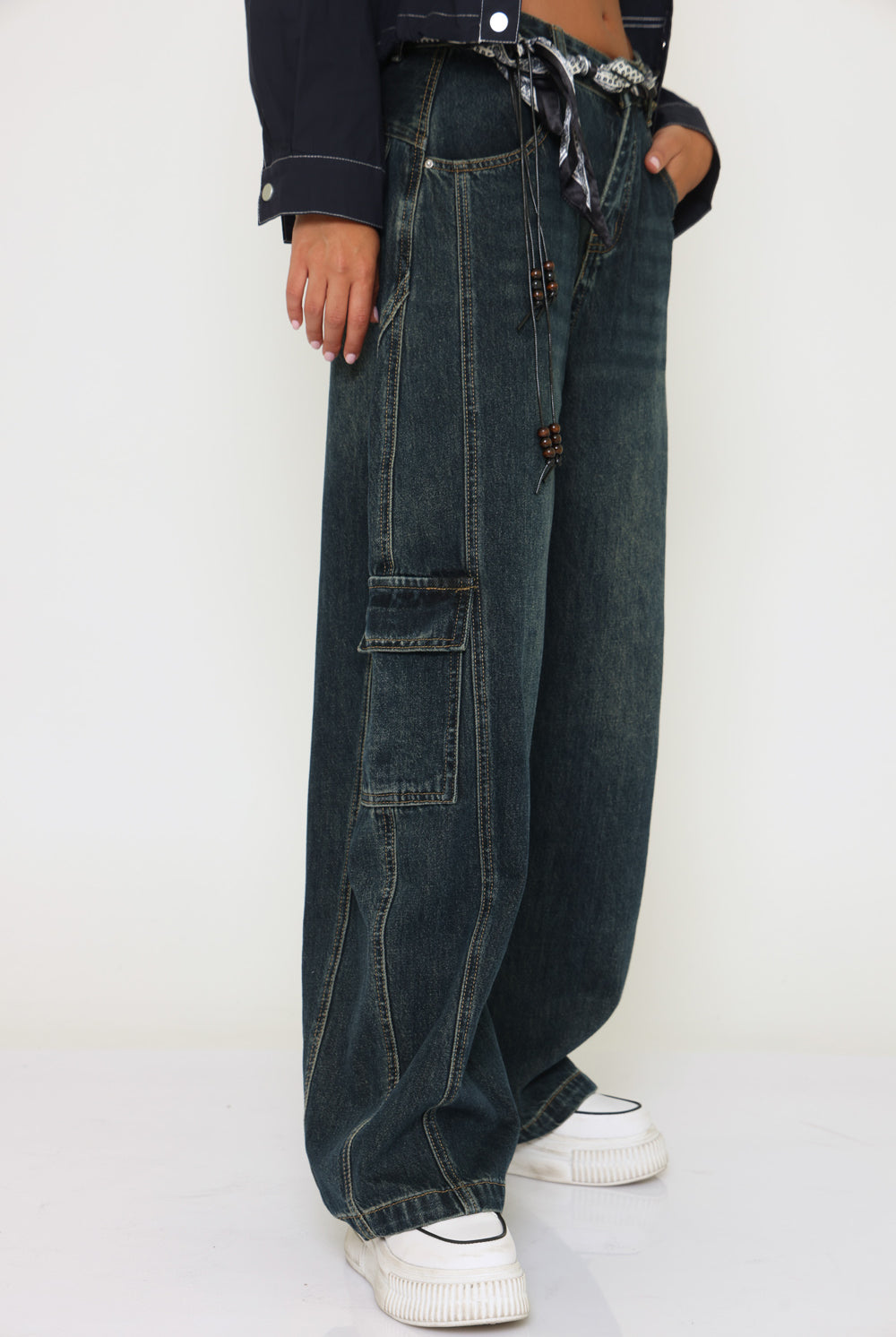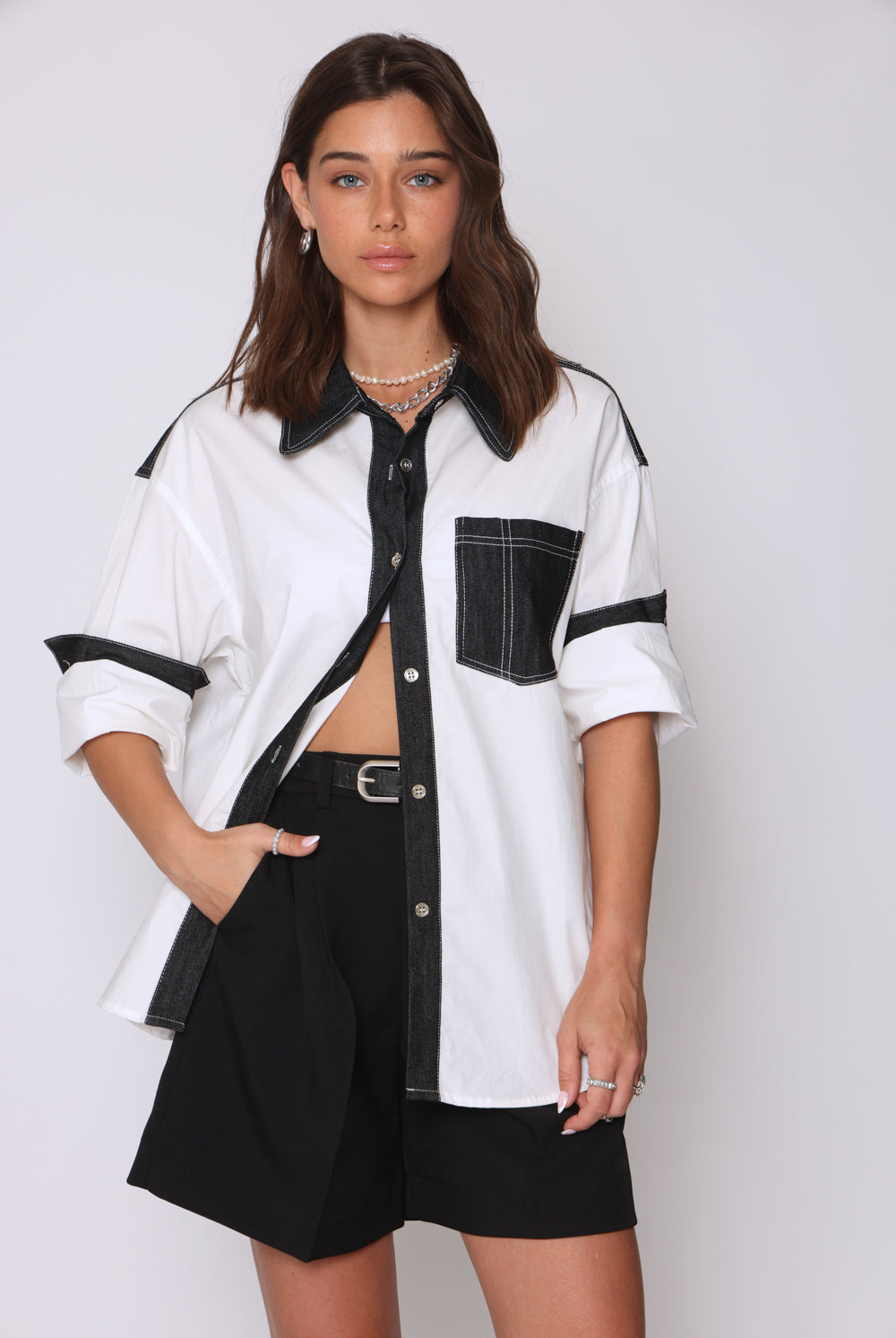 ג׳ינס שילוב לבן-שחור