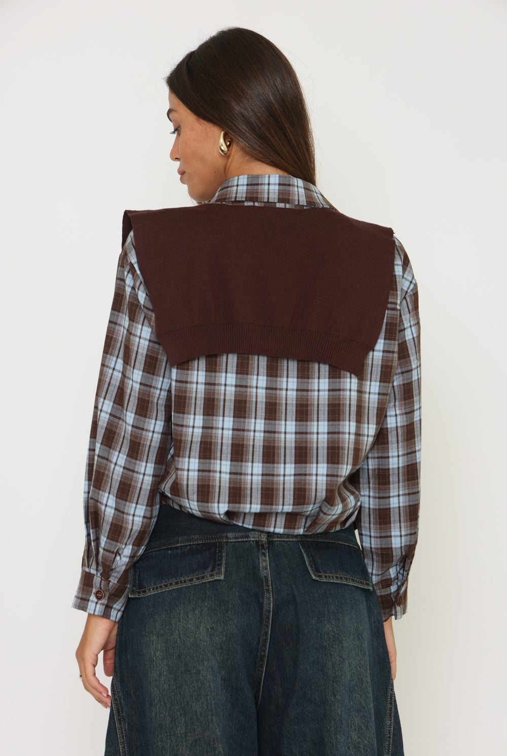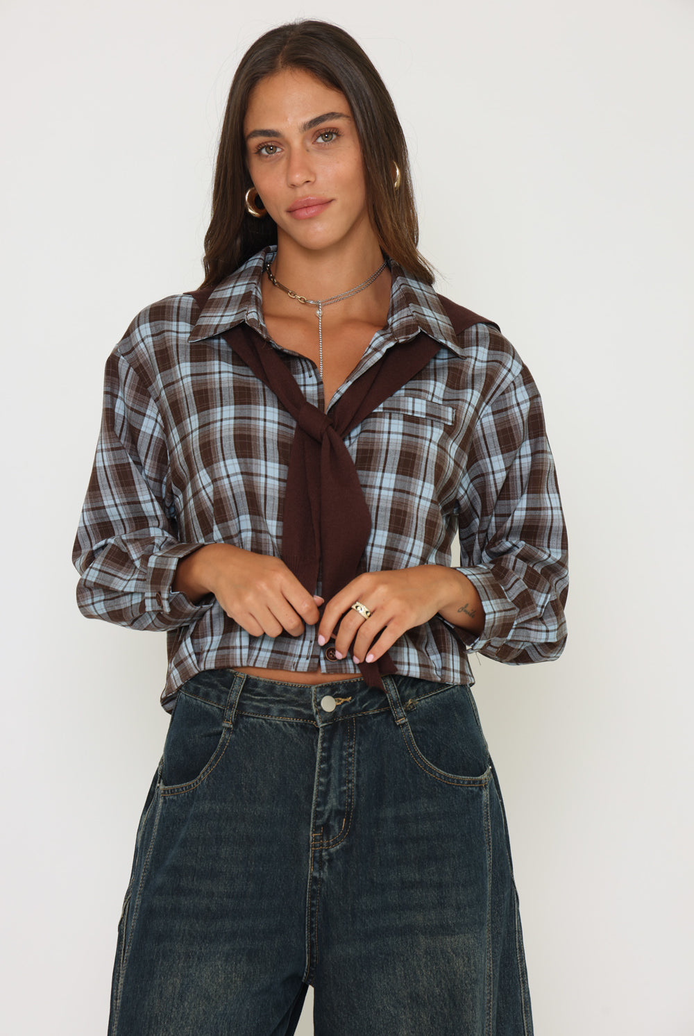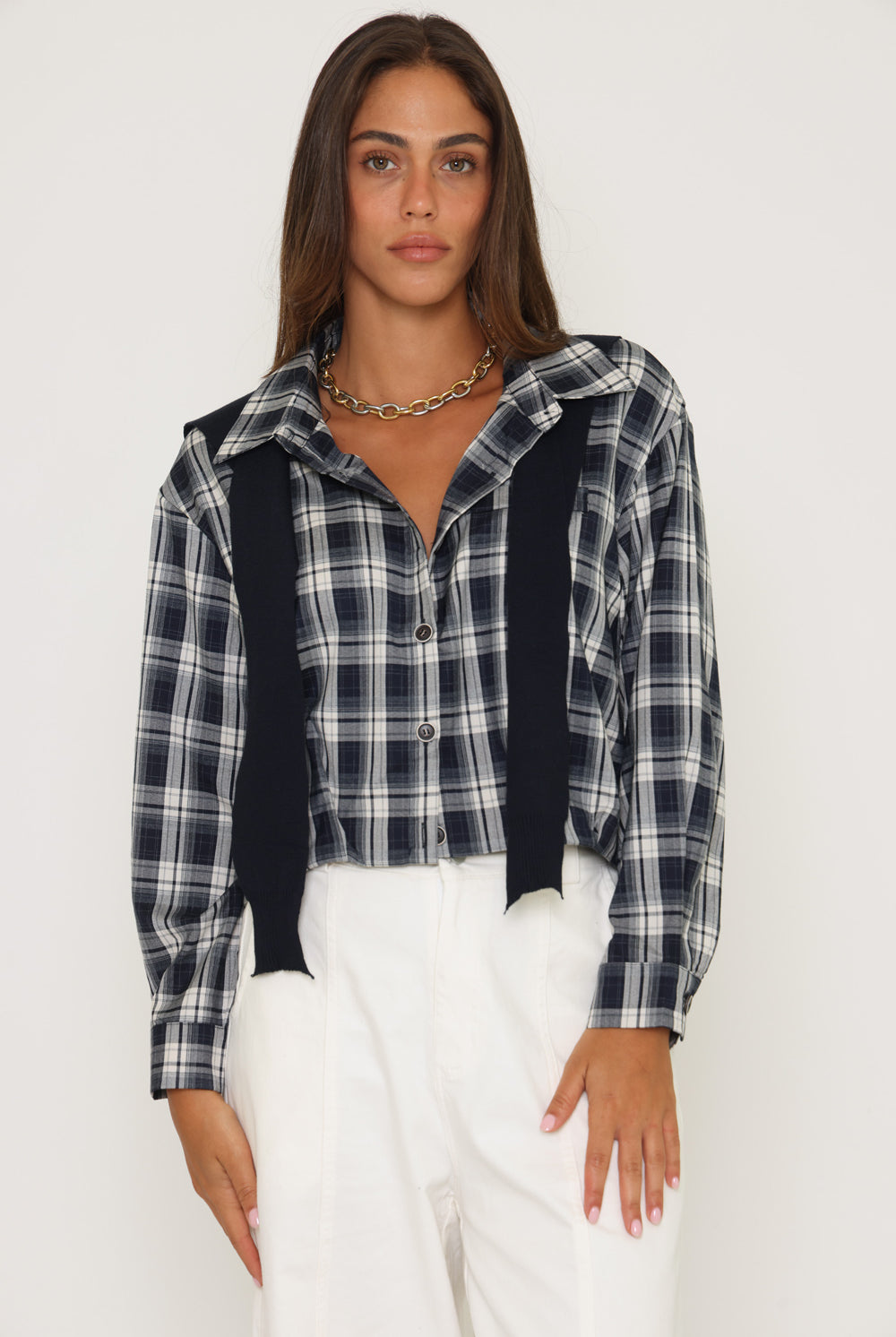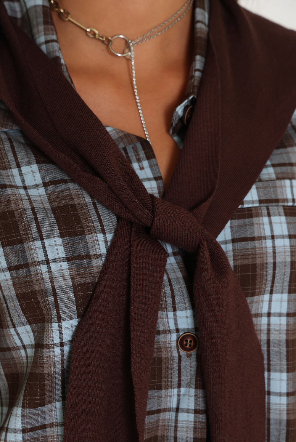 חולצת משבצות בנדנה סריג