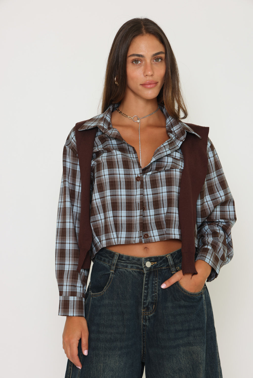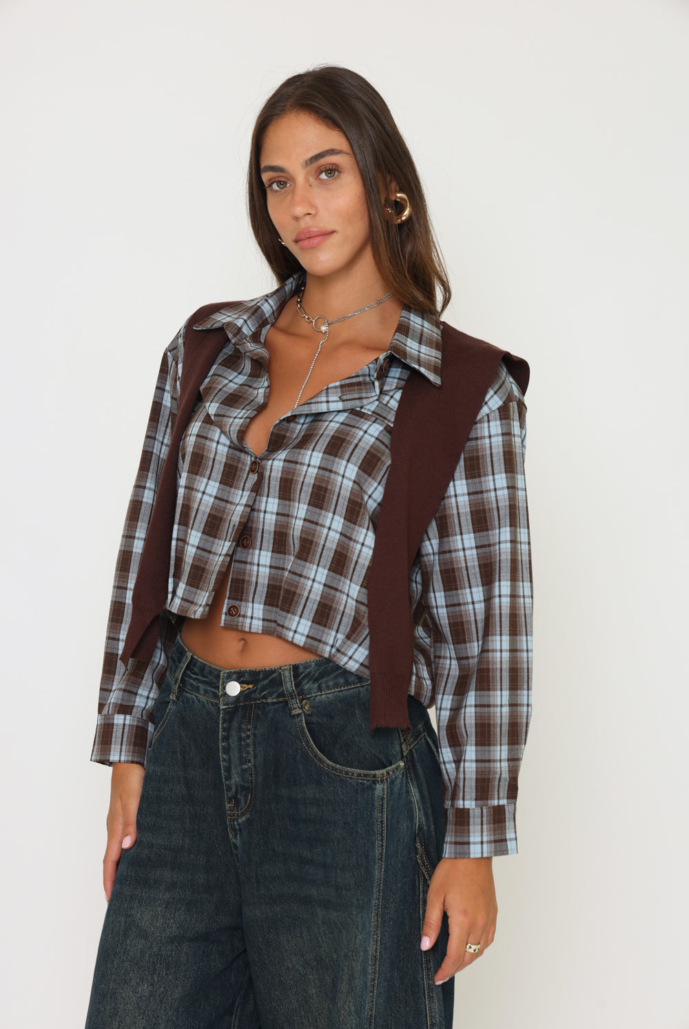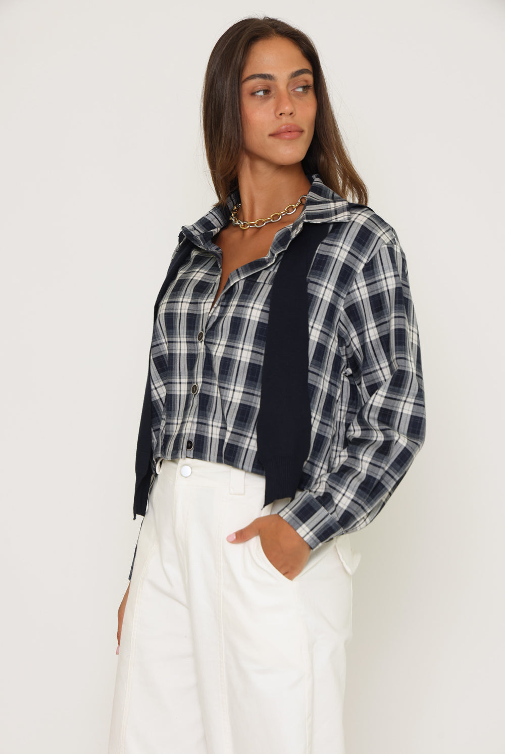 חולצת משבצות בנדנה סריג