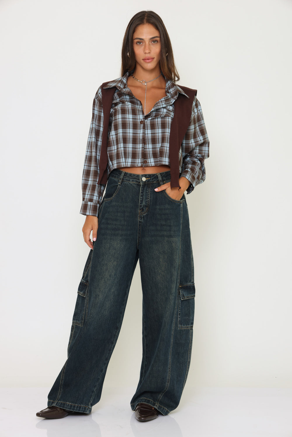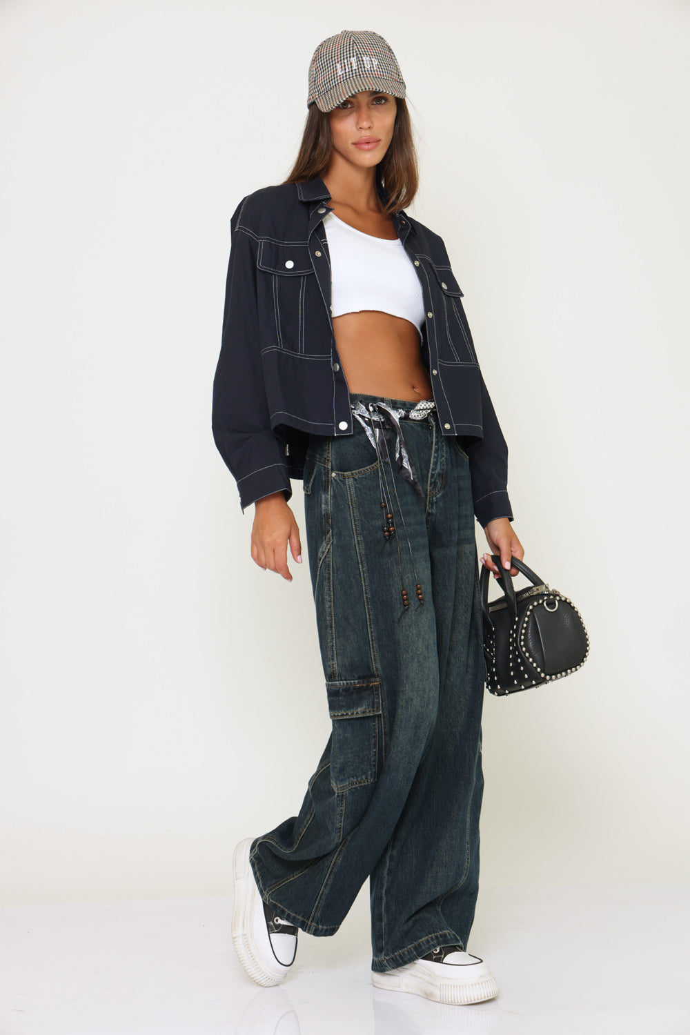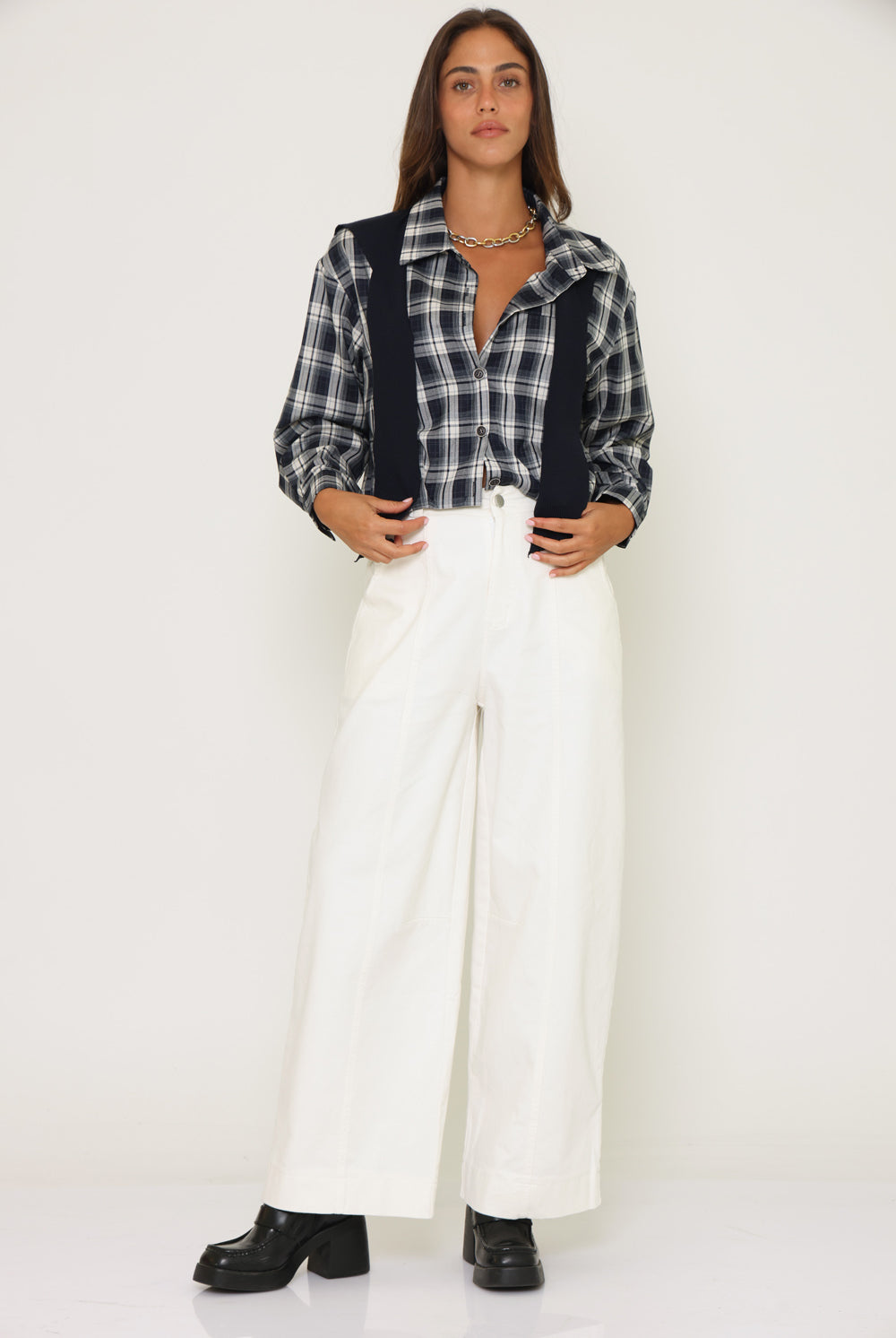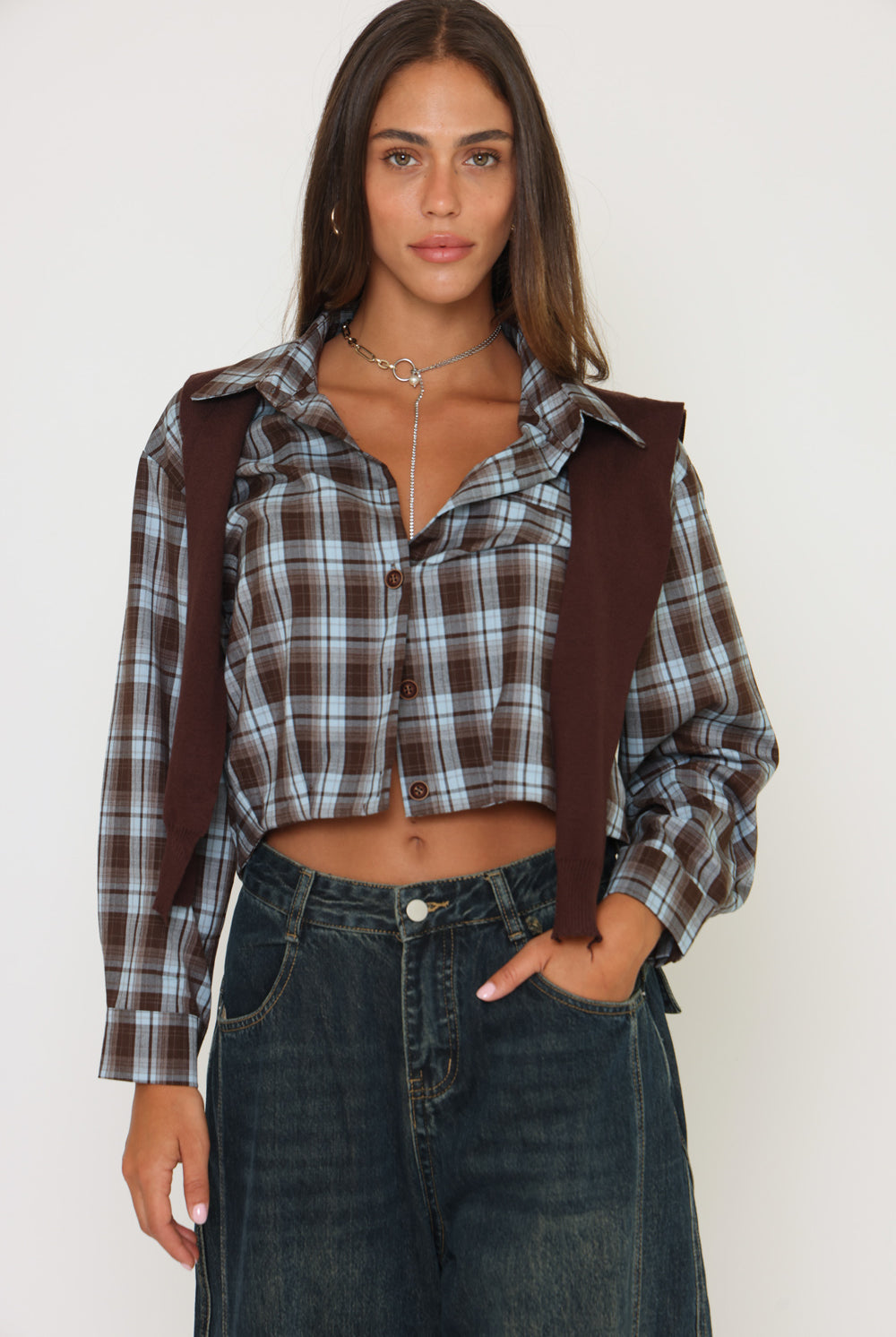 חולצת משבצות בנדנה סריג