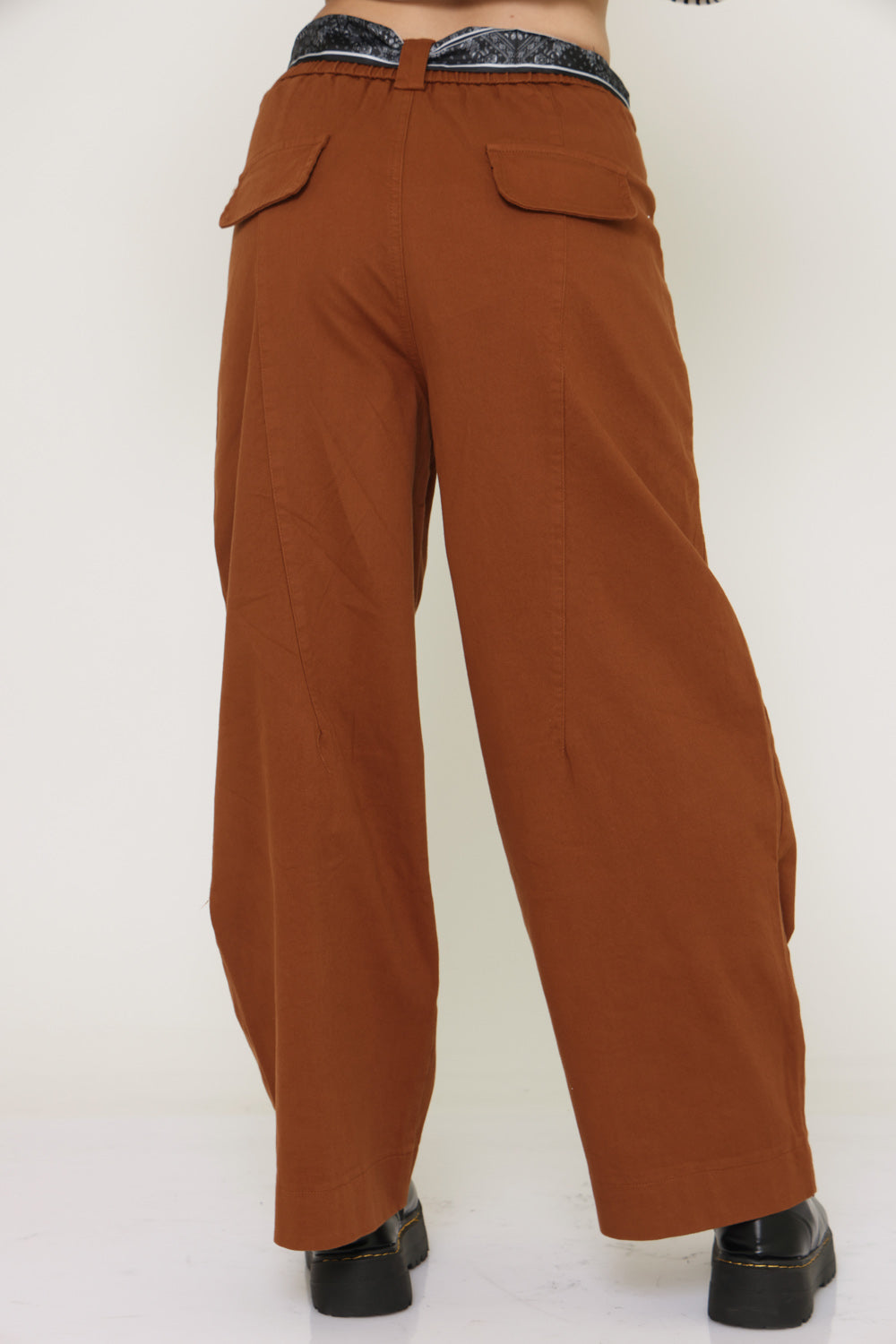 מכנס כותנה מתרחב חצי גומי + בנדנה